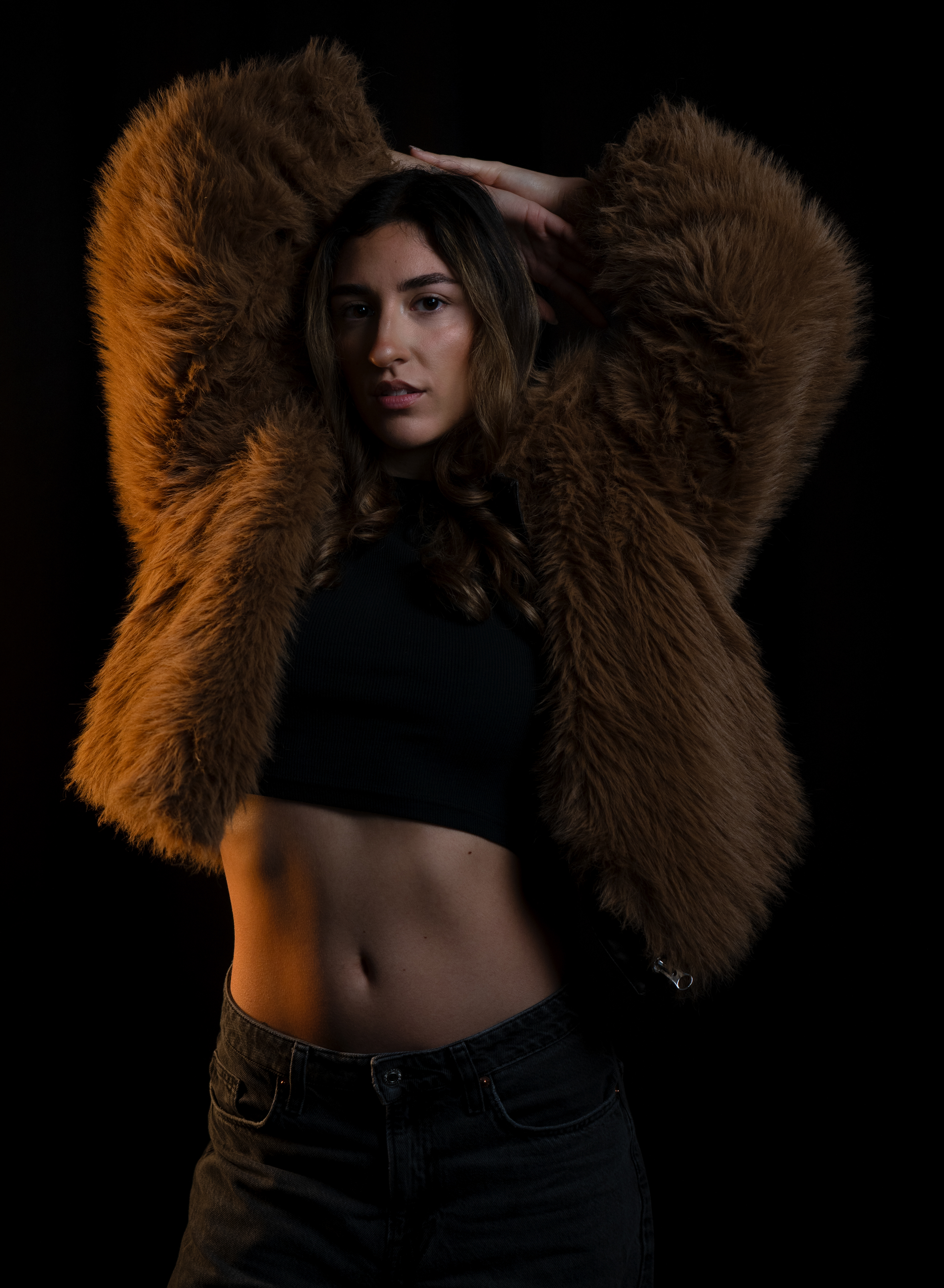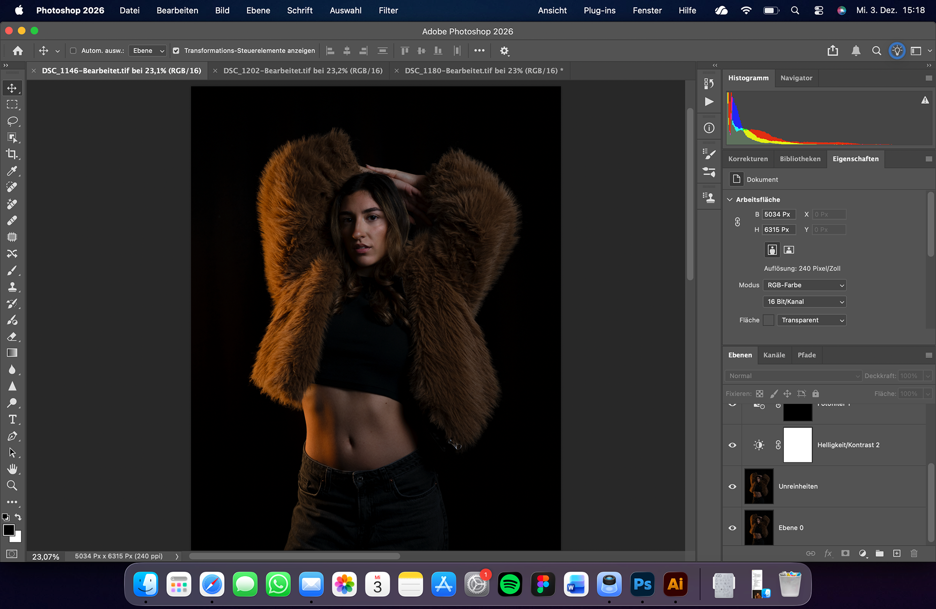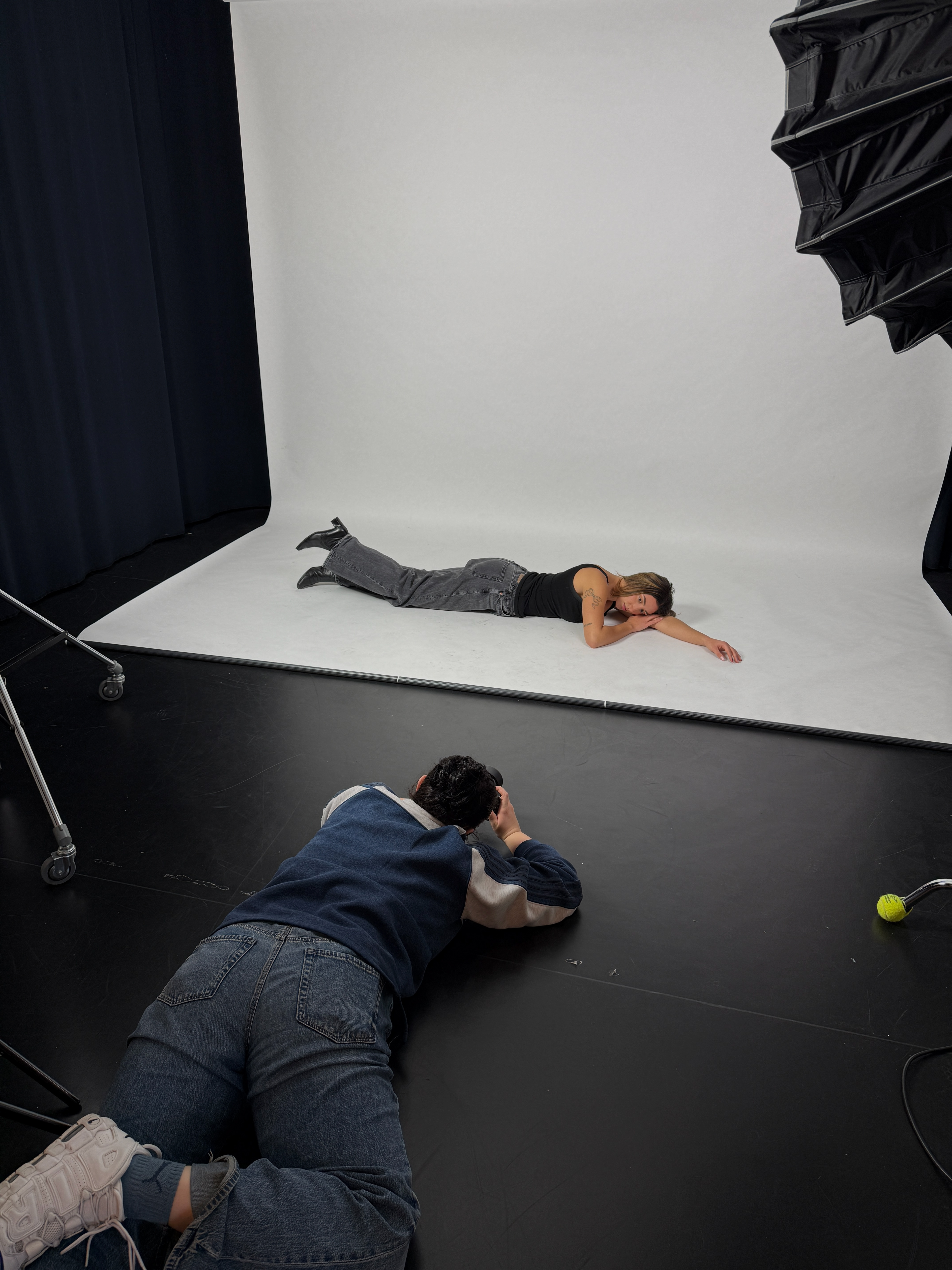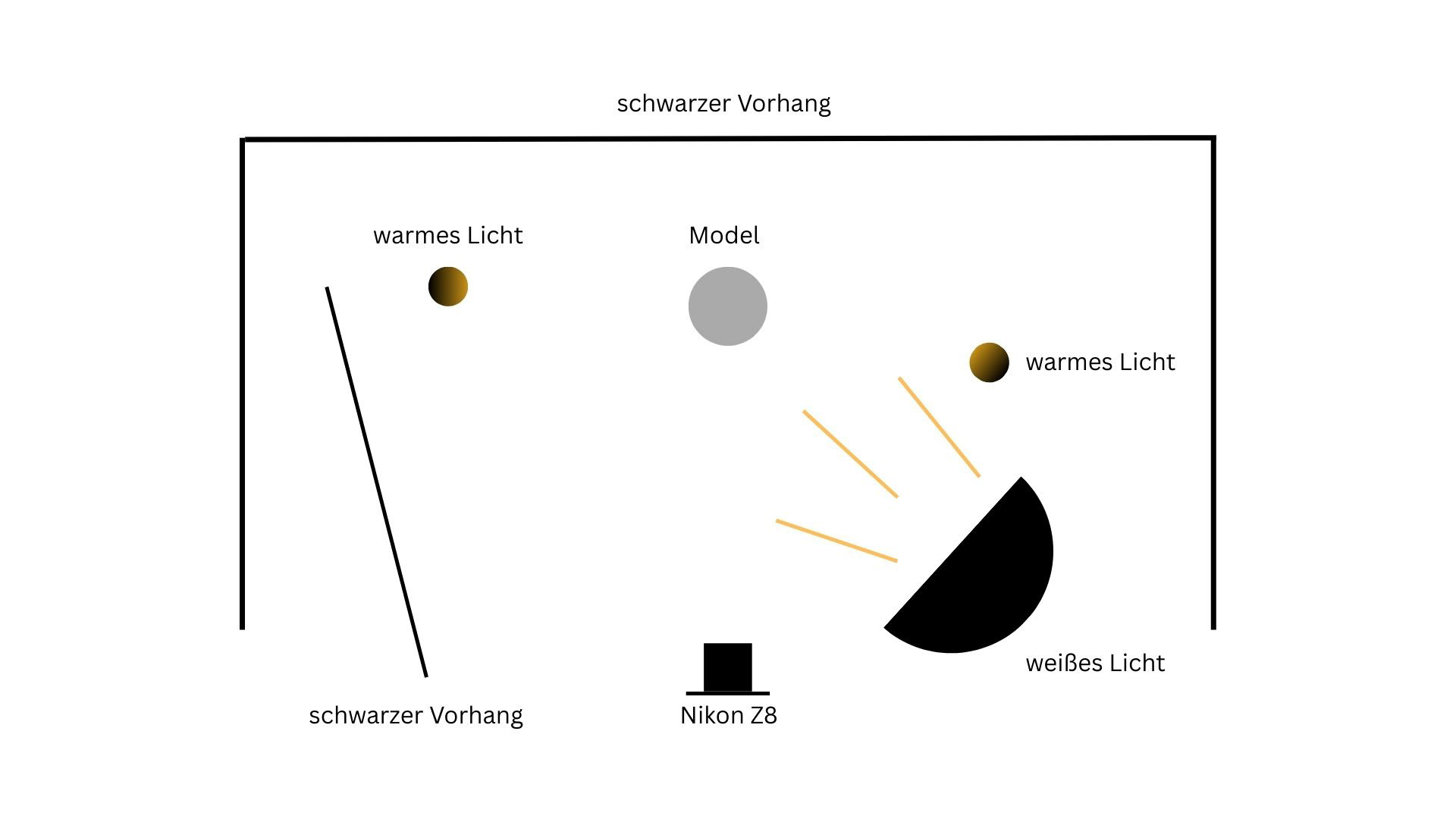 Zum Fotografieren war ich an beiden Shooting-Tagen im kleinen Studio. Ich habe mit einer Nikon Z8 fotografiert und zusätzlich ein großes Licht und zwei Apatures mit warmem Licht aufgestellt. Außerdem haben wir ein schwarzes Tuch neben das Model gehalten, um Spiegelungen zu reduzieren.