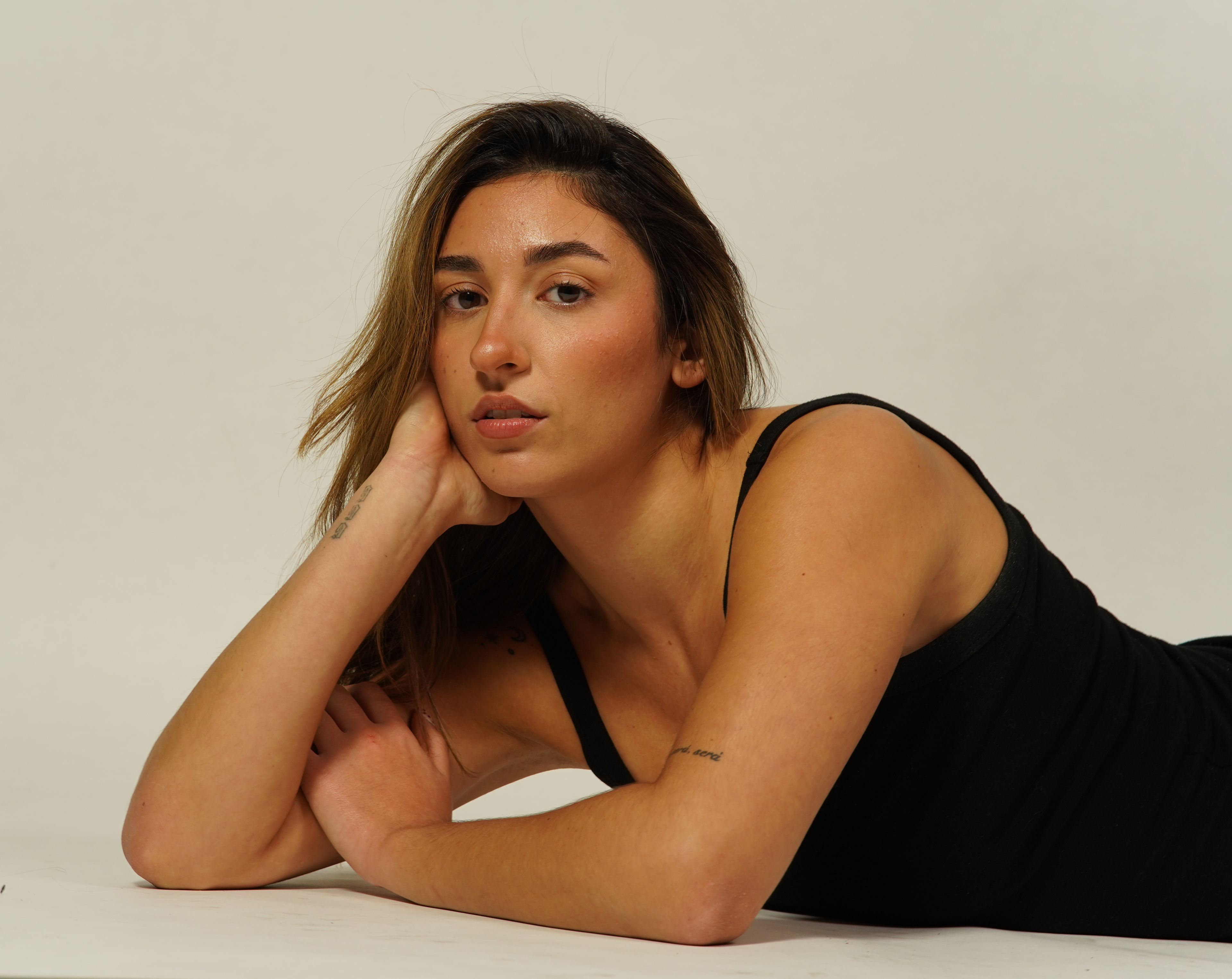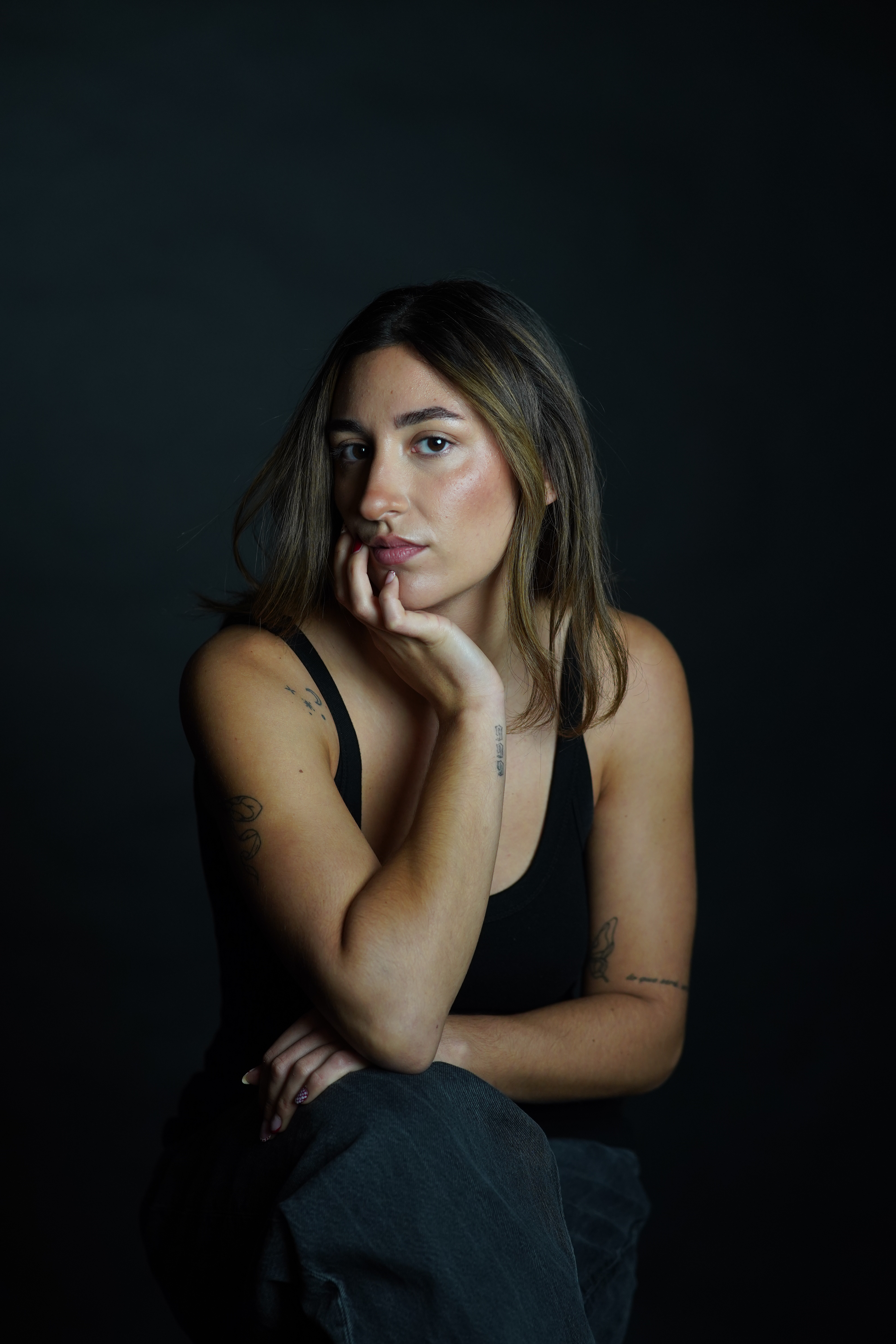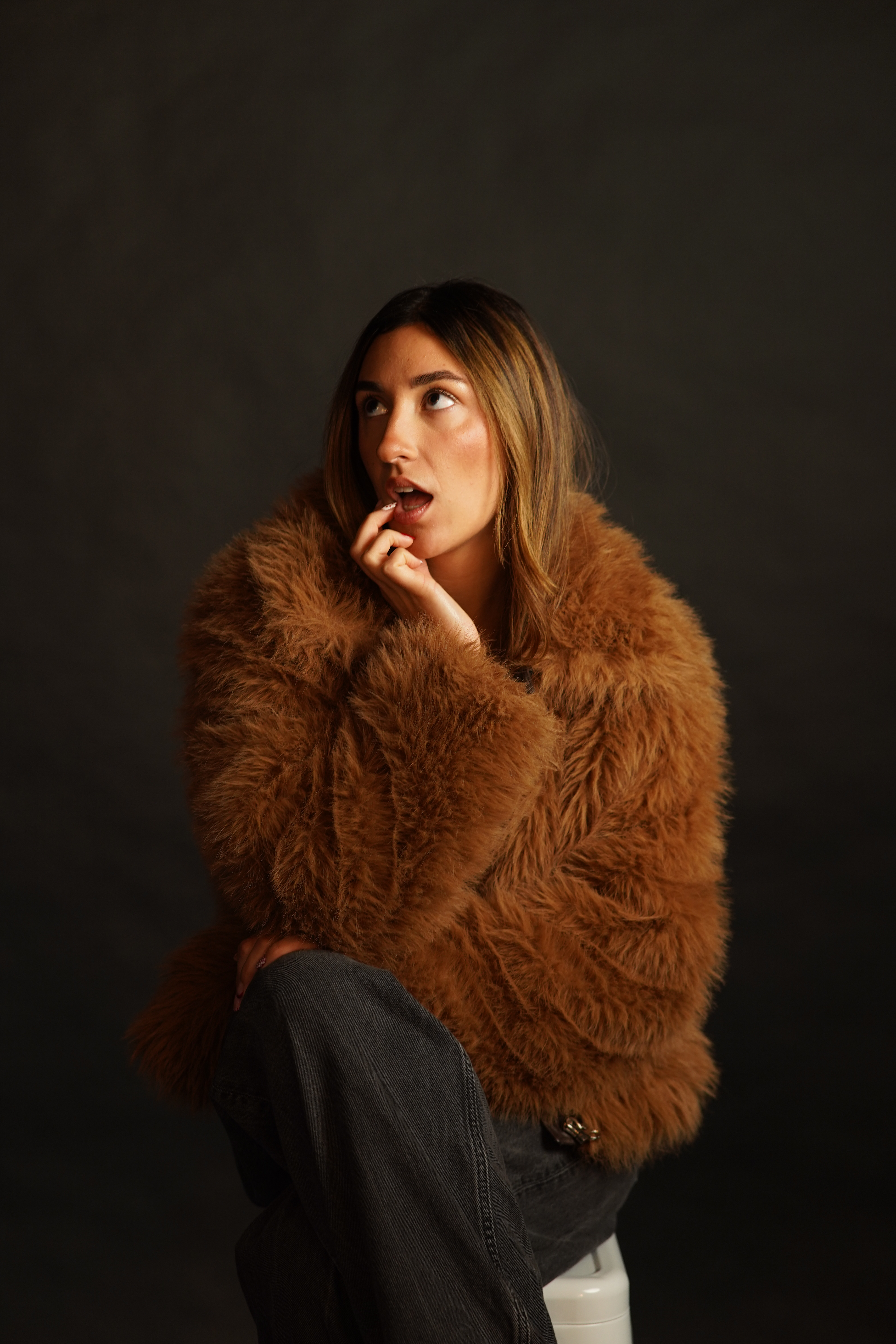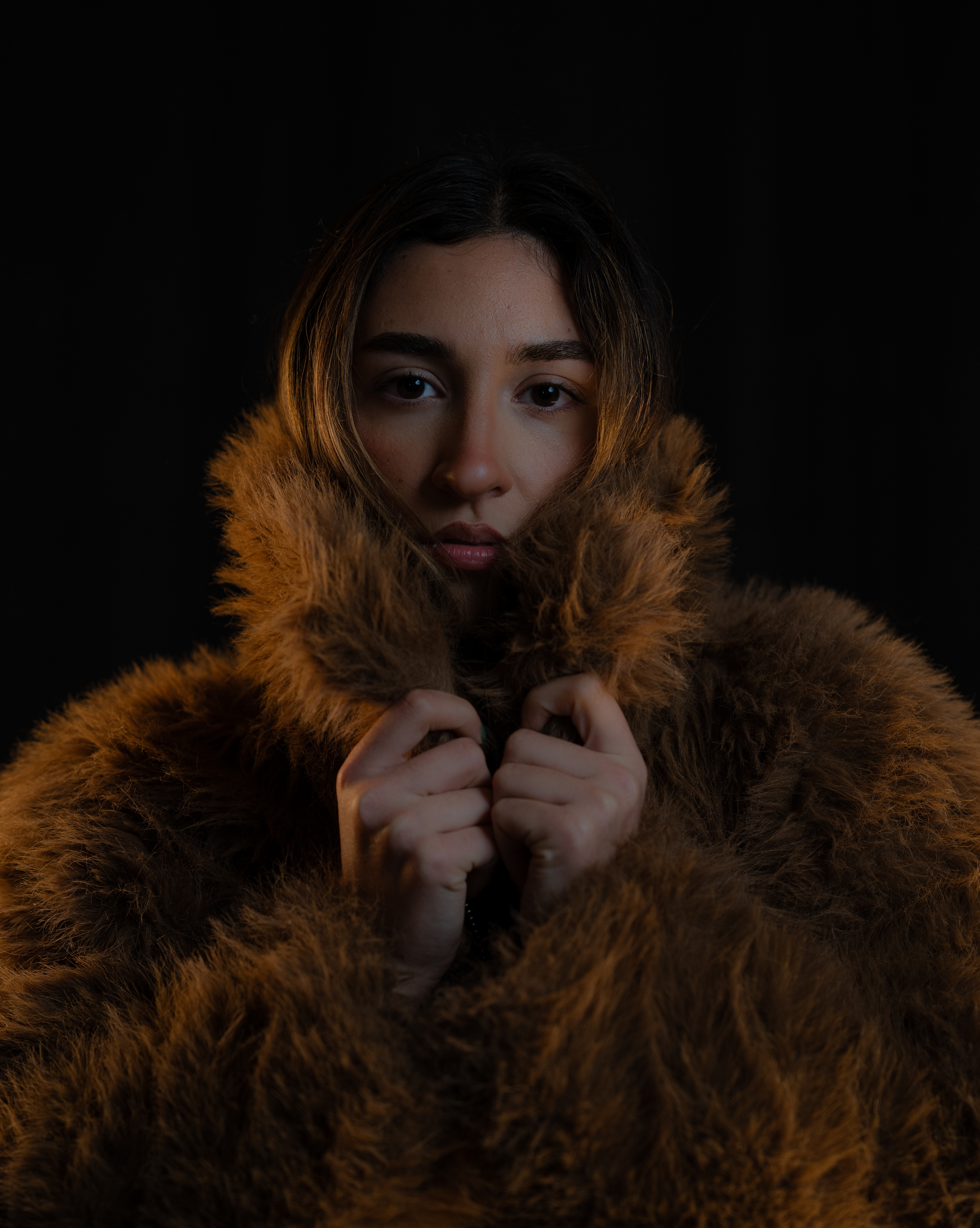 Zum Fotografieren war ich an beiden Shooting-Tagen im kleinen Studio. Ich habe mit einer Nikon Z8 fotografiert und zusätzlich ein großes Licht und zwei Apatures mit warmem Licht aufgestellt. Außerdem haben wir ein schwarzes Tuch neben das Model gehalten, um Spiegelungen zu reduzieren.
