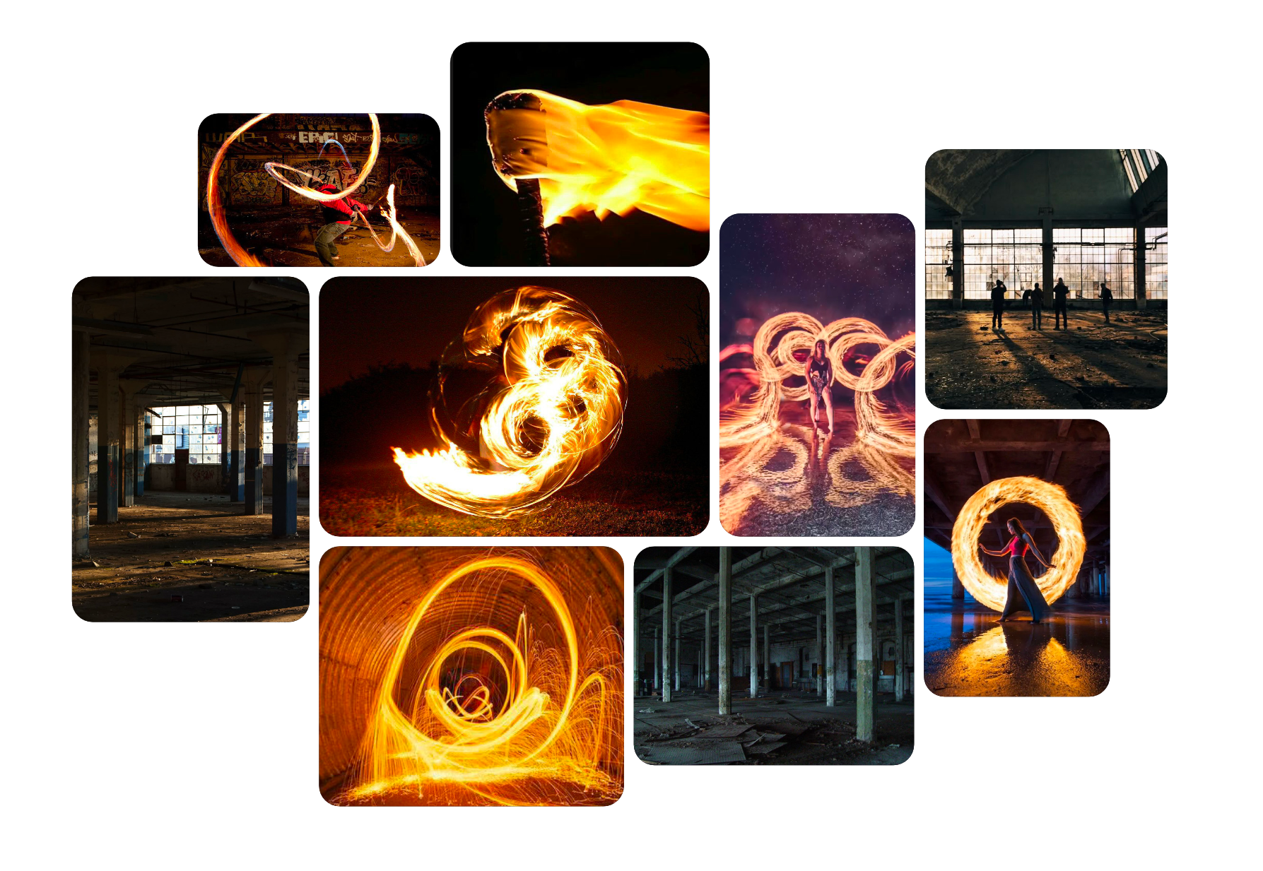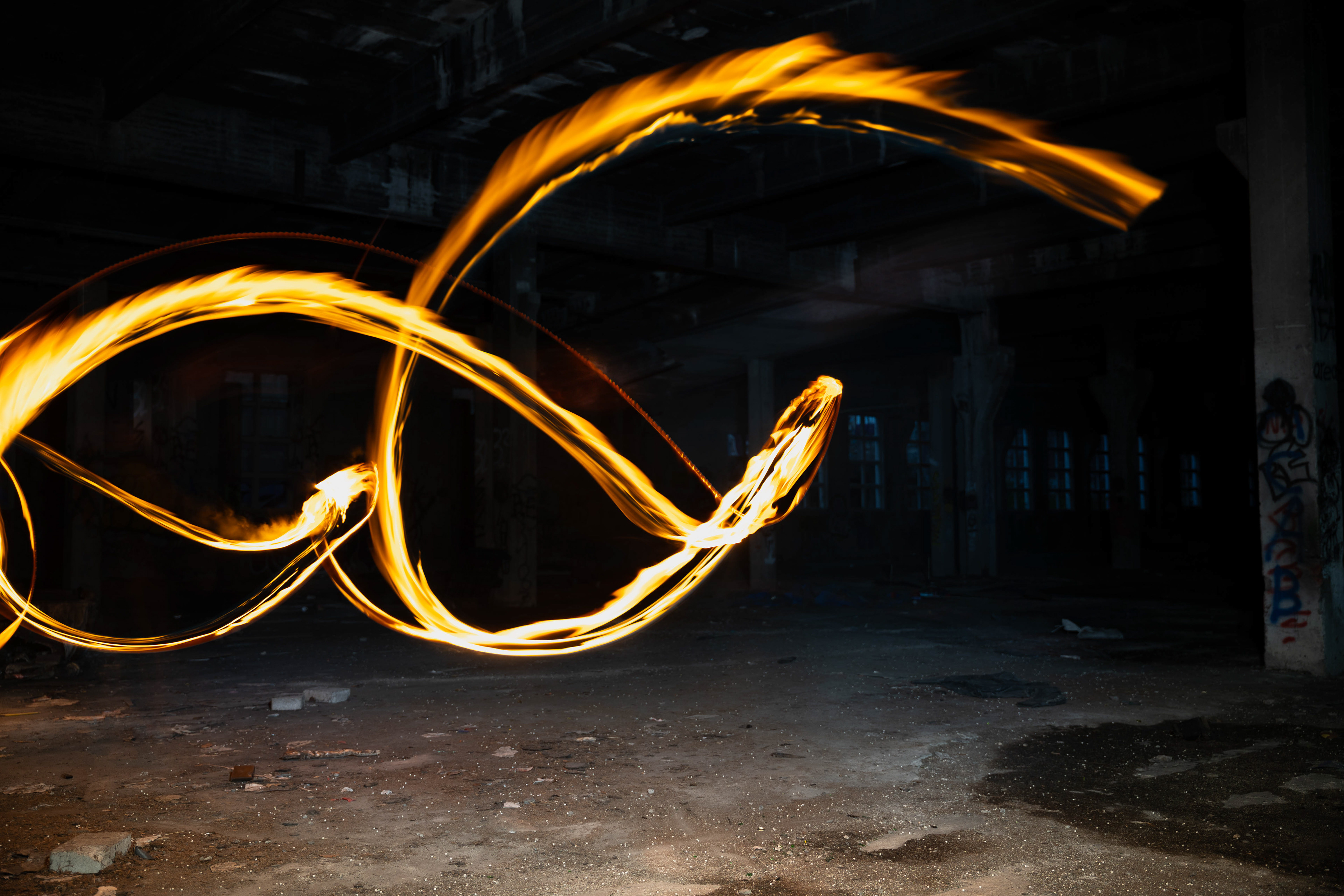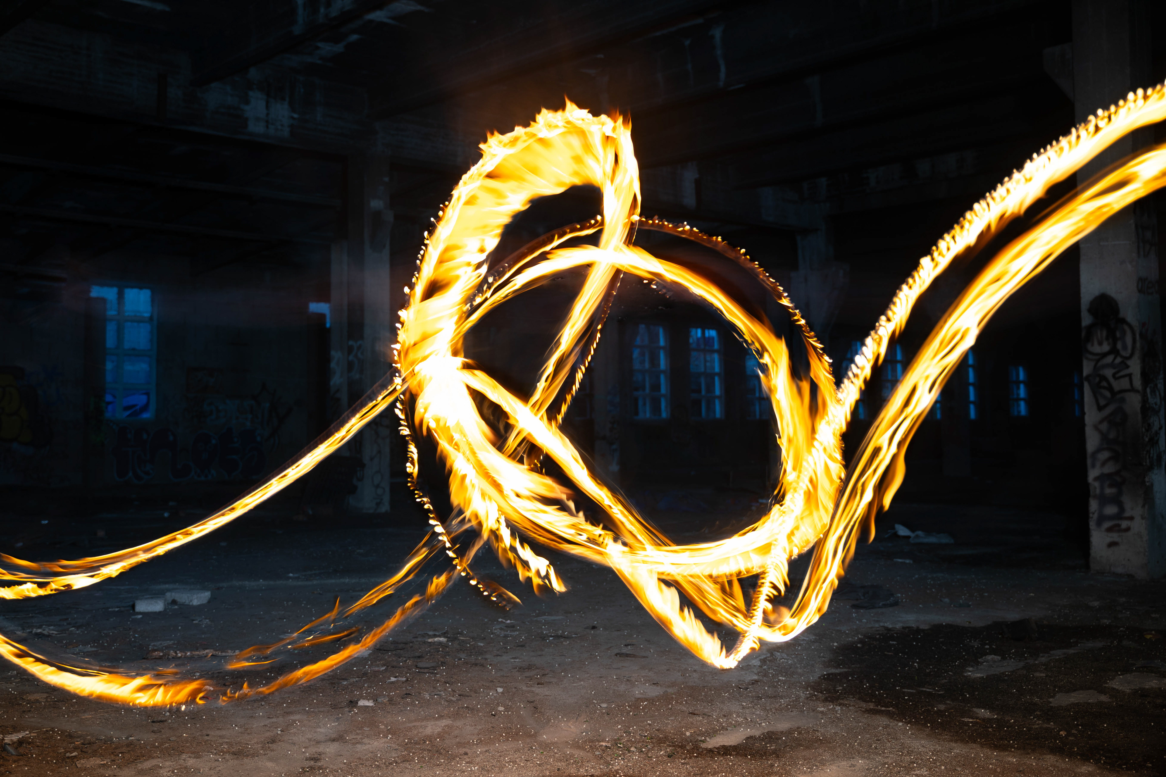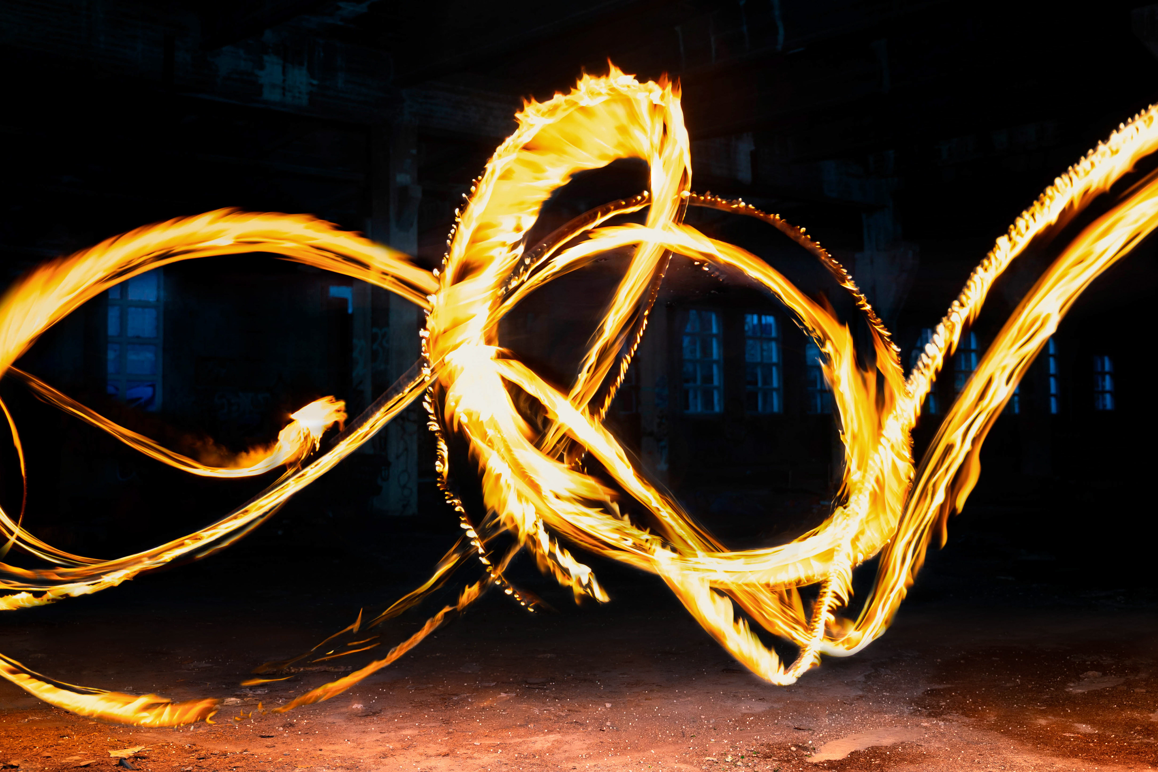 Für die Nachbearbeitung nutzten wir Photoshop. Dabei entfernten wir einige störende Flecken und optimierten die Bildwirkung, indem wir die Flammen aufgehellt, den Boden wärmer getönt und die Fenster heller gestaltet haben. Außerdem setzten wir das finale Bild aus mehreren Aufnahmen zusammen, um eine intensivere und eindrucksvollere Wirkung zu erzielen.